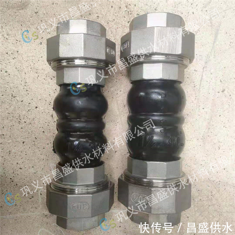 ? 丝扣橡胶接头采用天然合成橡胶生产,内加尼龙帘线,承压16kg,丝扣采用玛钢材质生产,这种产品的优点就是:减振效果比不锈钢的减振效果好30,隔音效果比不锈钢软连接好46,很多对环境要求高的项目都会采用橡胶软连接。?